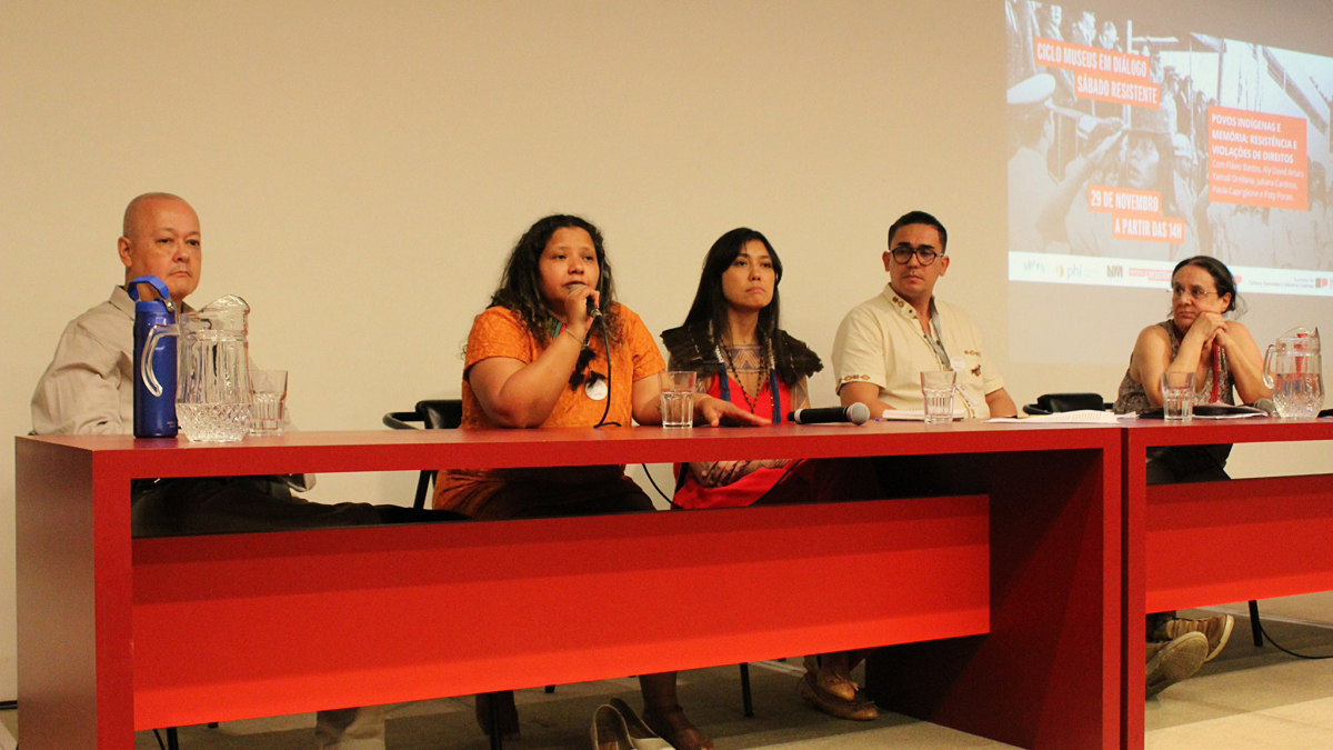 A abertura institucional contou com a saudação de Ana Pato, diretora técnica do Memorial da Resistência, e de Katia Felipini, diretora técnica do Núcleo Memória, que trataram sobre o início dos trabalhos voltados à história indígena por parte das instituições ligadas à memória e aos direitos humanos, destacando a importância de debates como o do dia para fortalecer e promover essa pauta.